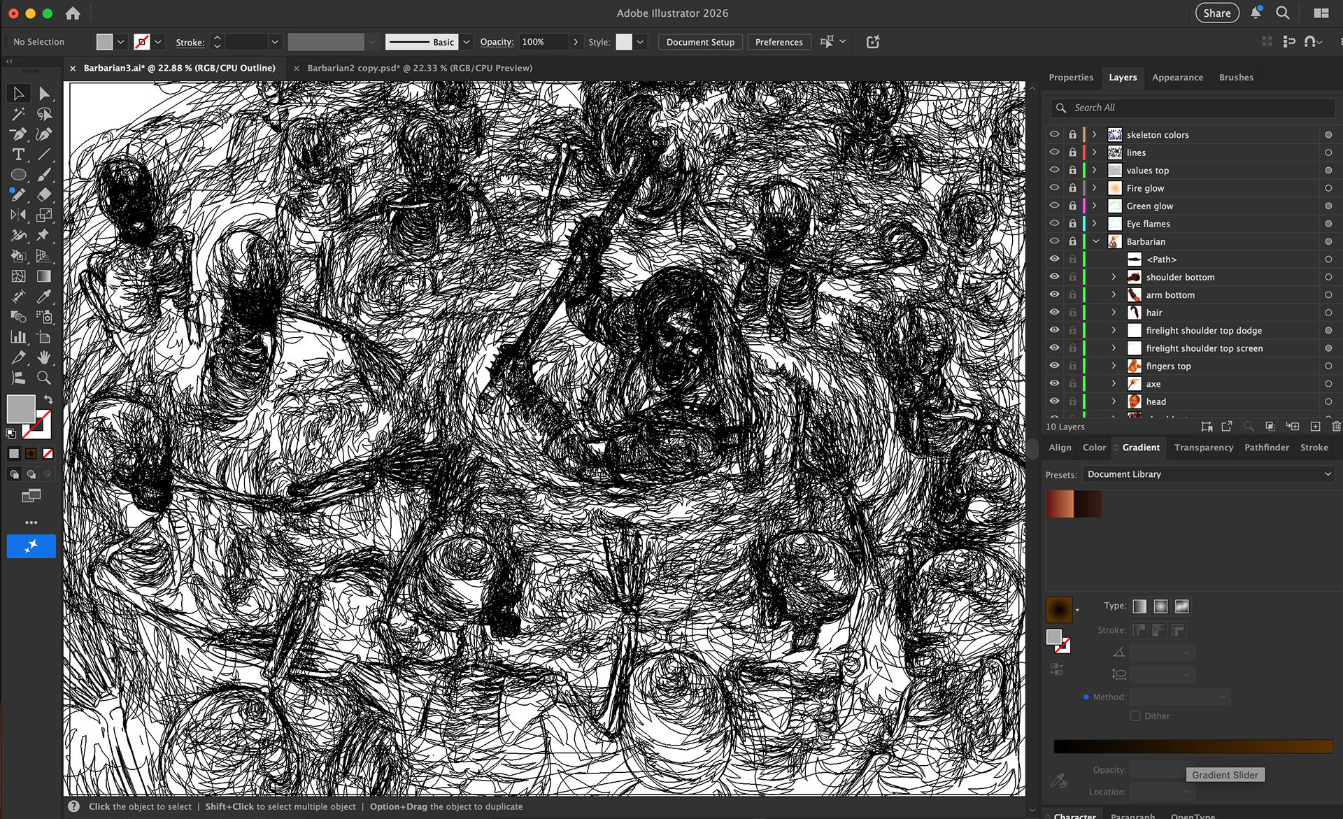 Outline view - no filters or AI-generated vectors here. All marks are hand-drawn with the pencil and pen tools.