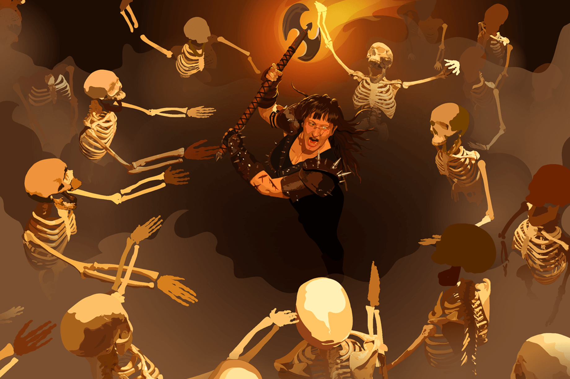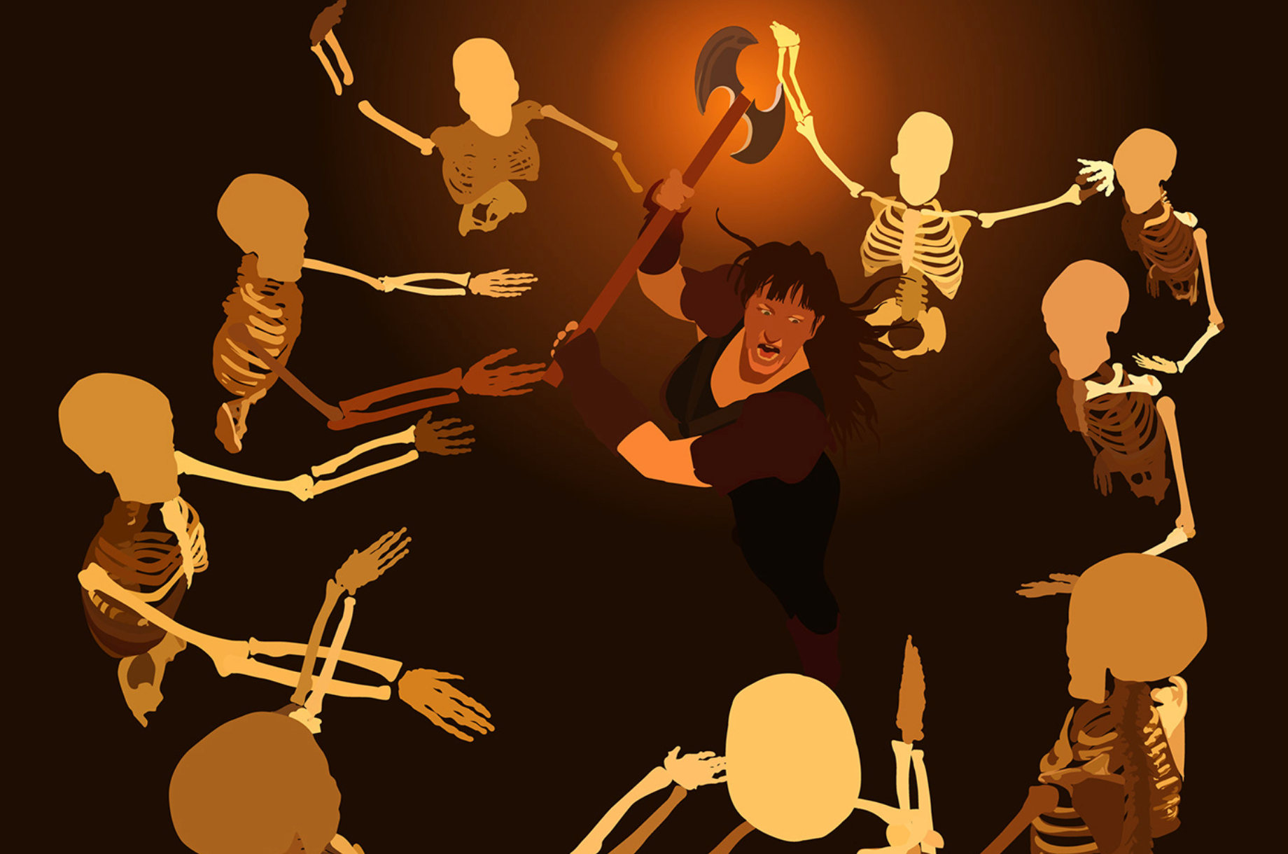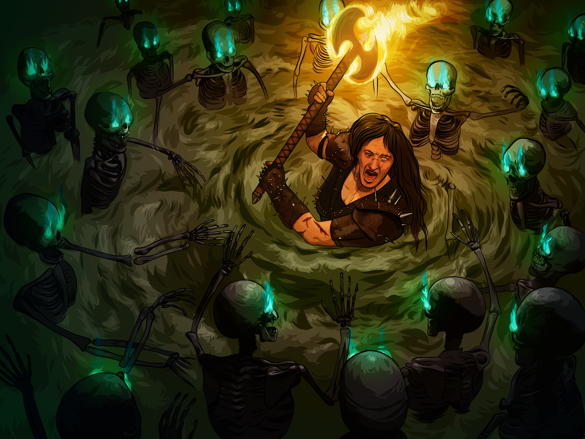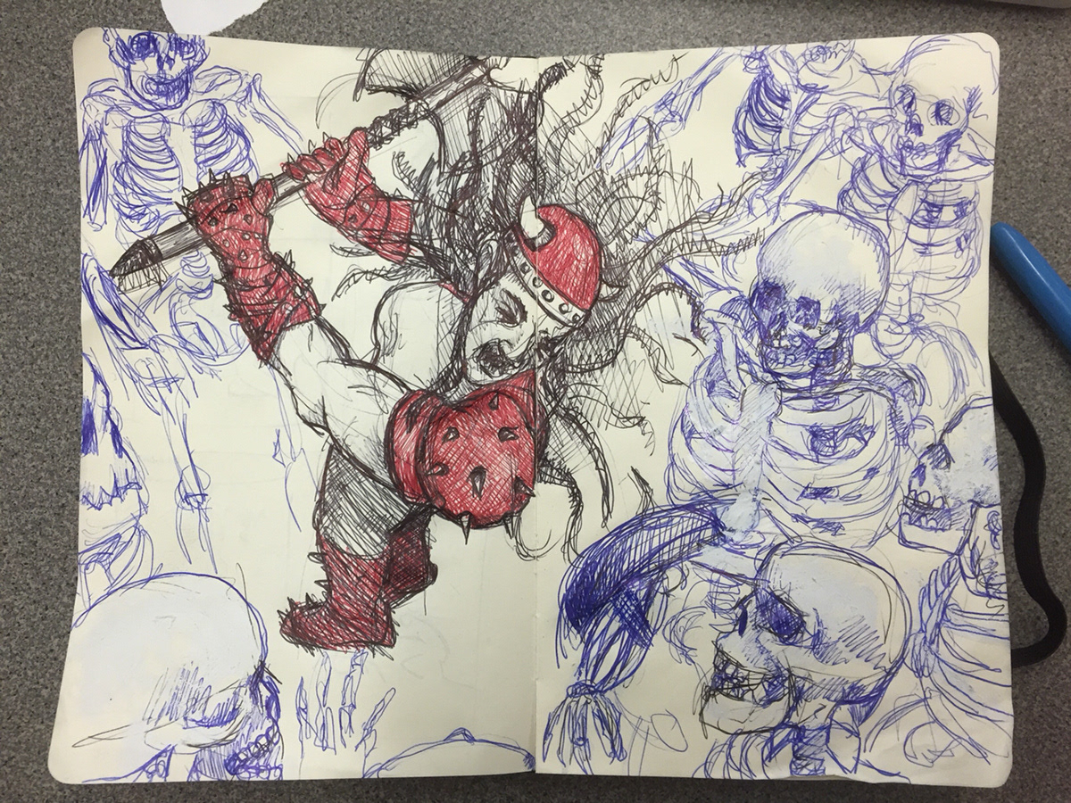 I started this drawing about a decade ago. My advanced students were doing the "nemesis" project (where they pair off and create a pair of nemeses who are opposites in some way) but we had an odd number of people. One student was down to collaborate with me, and we went with an evil necromancer (him) and a brawny hero who regenerates (me). I bit off way more than I could chew with this one, mostly because my plastic skeleton model didn't have bend-able fingers and I struggled to get the hands to look realistic. I eventually got distracted by other things.