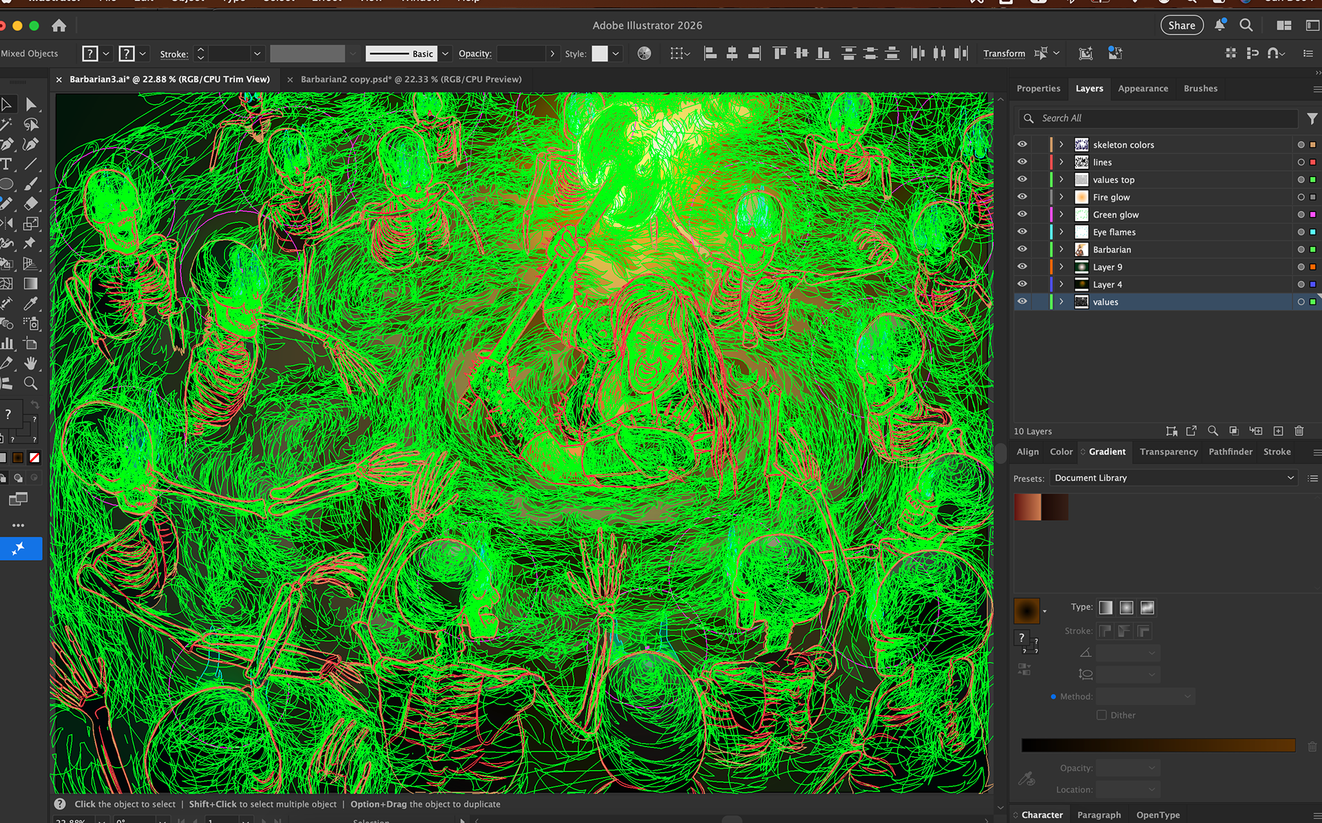 Vector drawing in Adobe Fresco and Adobe Illustrator using an iPad and Wacom Cintiq.