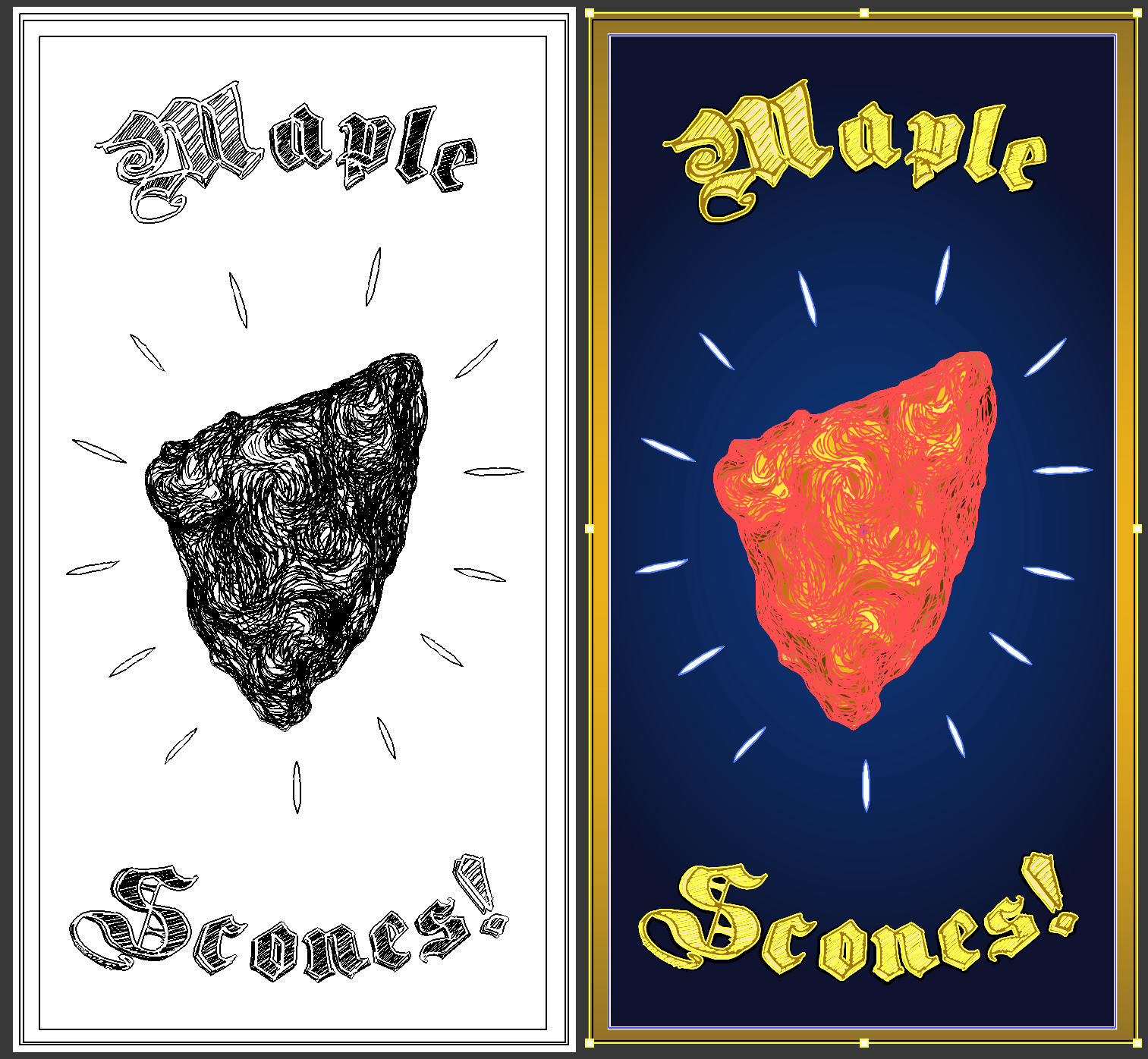 A friend wisely suggested I change my color palette, and I ditched the splat. Granted, the scone went through a vaguely poo-like stage, but I think I overcame it.