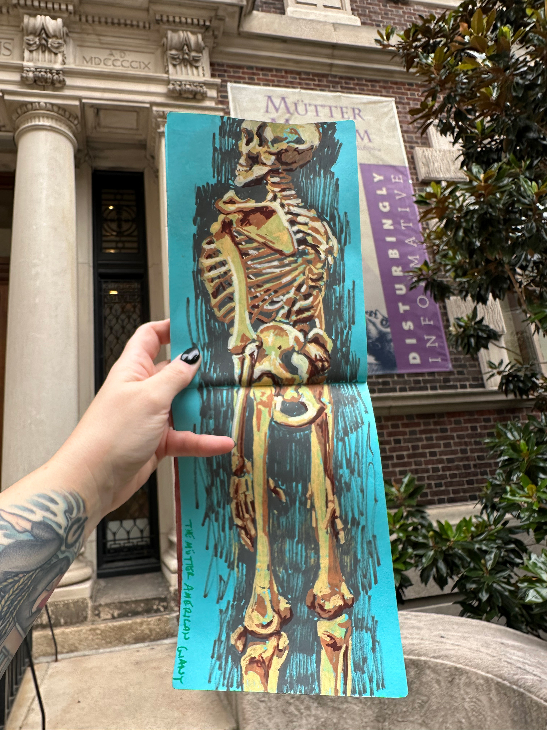 I spent a long time at the Mütter Museum sketching the "Mütter American Giant" skeleton.