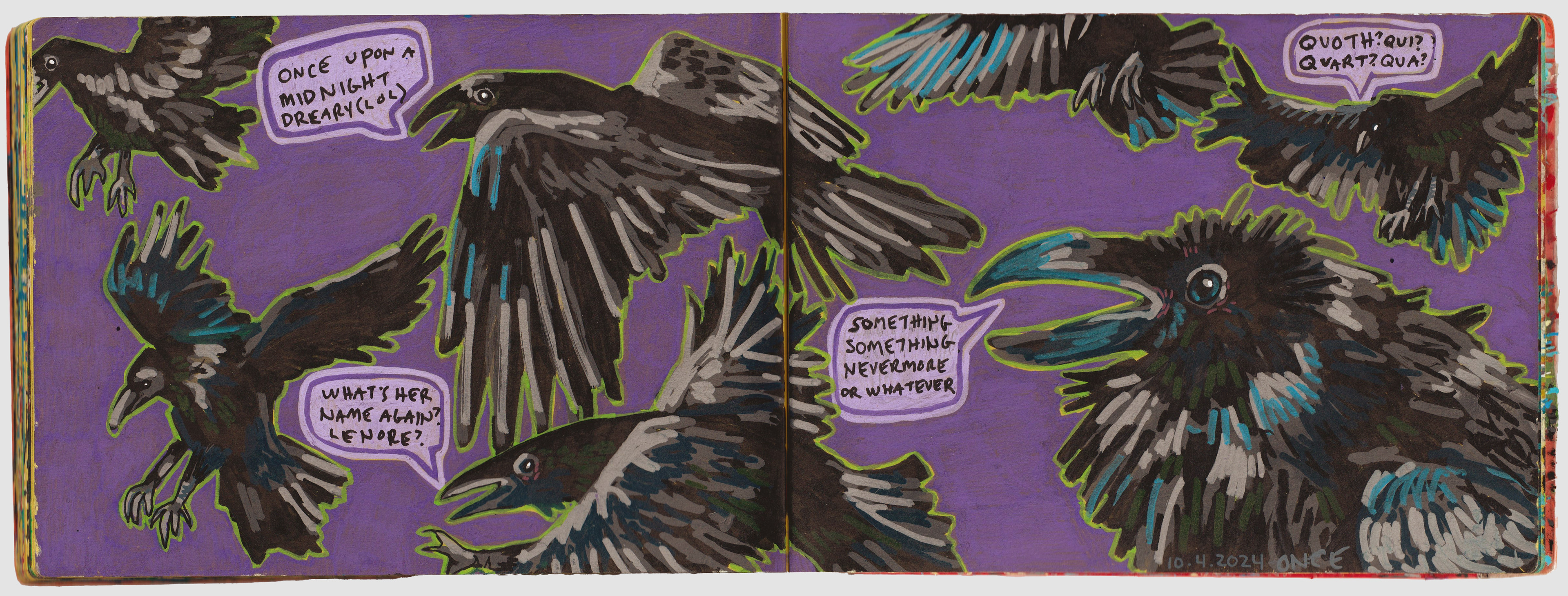 Daily drawing prompt for October: once. I spent a lot of middle school trying to memorize The Raven. It didn't take, but I still love that poem.