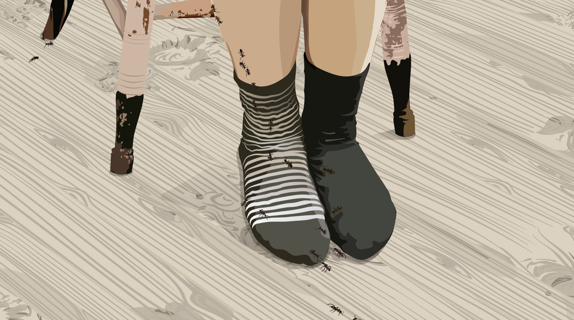 I wanted to make the general vibe unsettling without just covering everything in gore like I usually do. I was totally at a loss for ideas in my classroom one day after school when an idea hit me: ants. I actually shouted that word across the nearly empty room without providing any context for anyone who was listening. Thankfully the lone student working late had a good sense of humor.