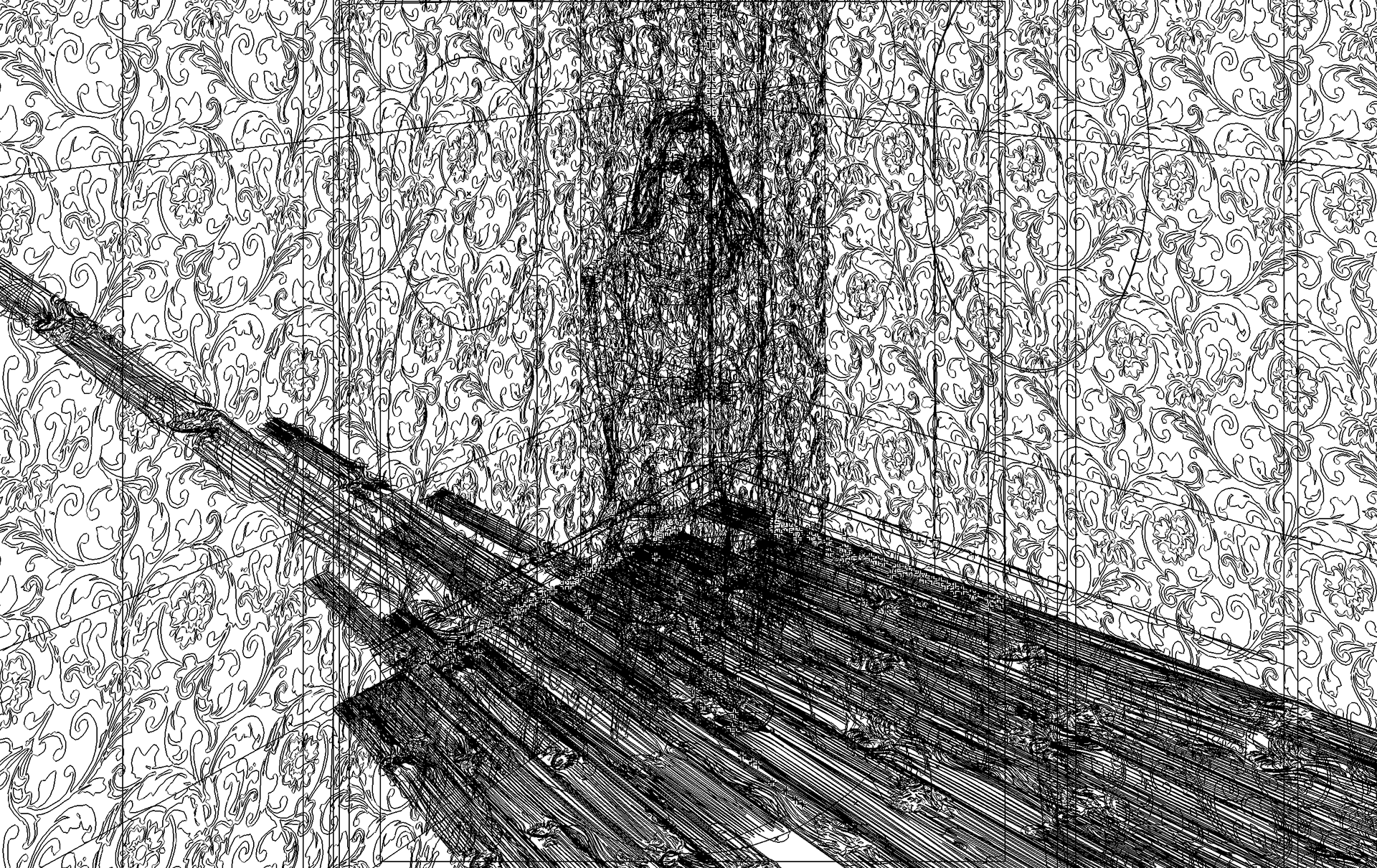 Outline mode. Yes, there is a figure buried under all of that woodgrain and damask wallpaper.